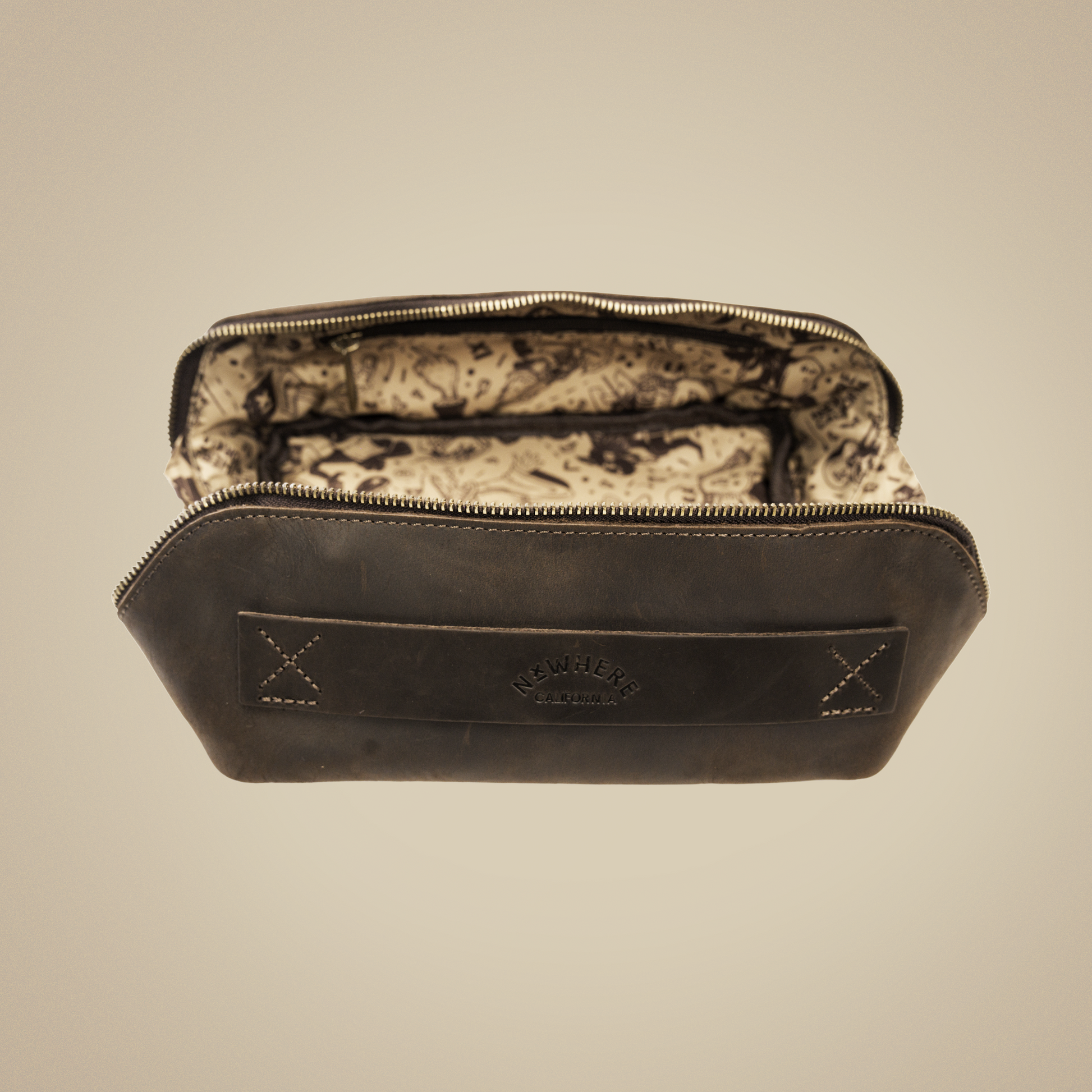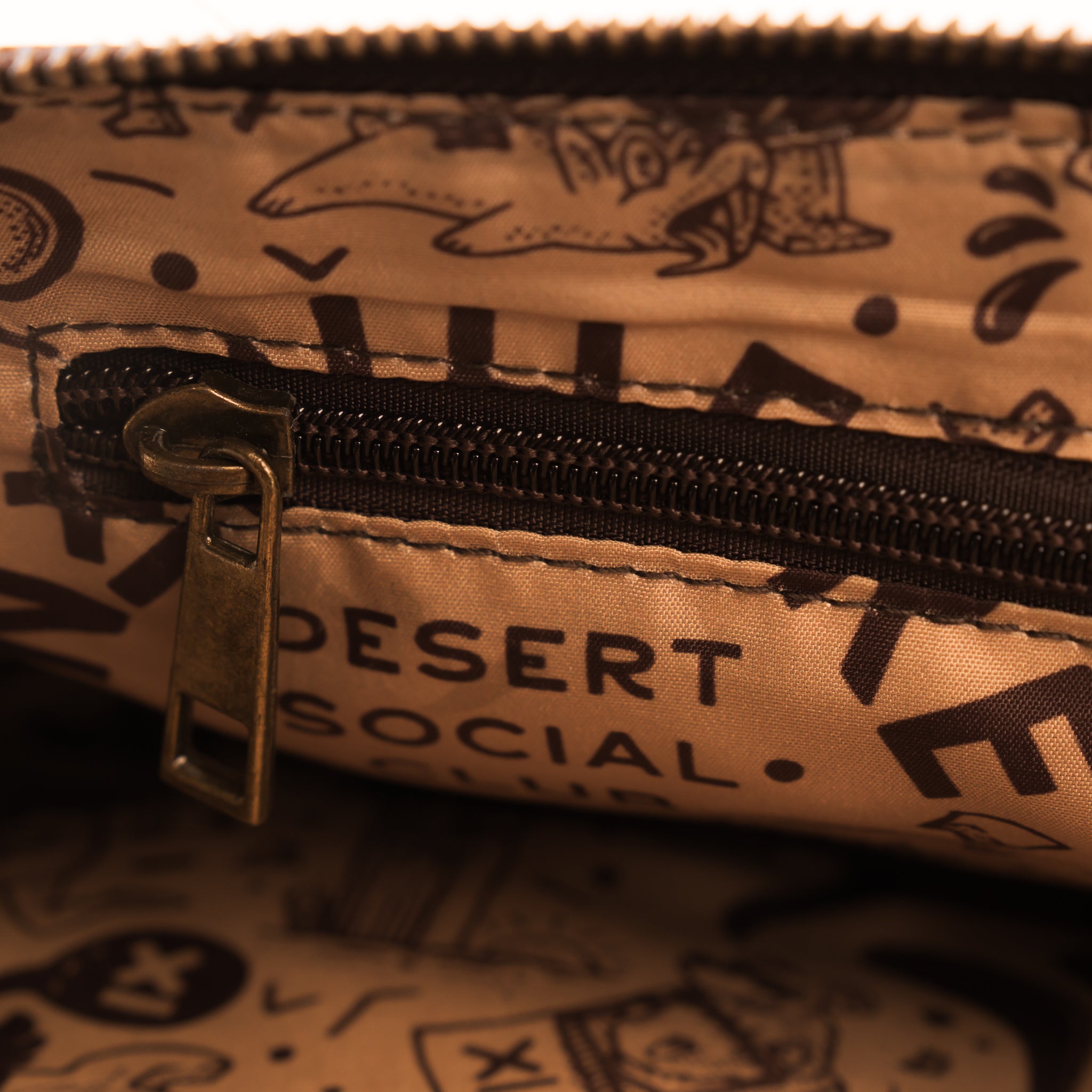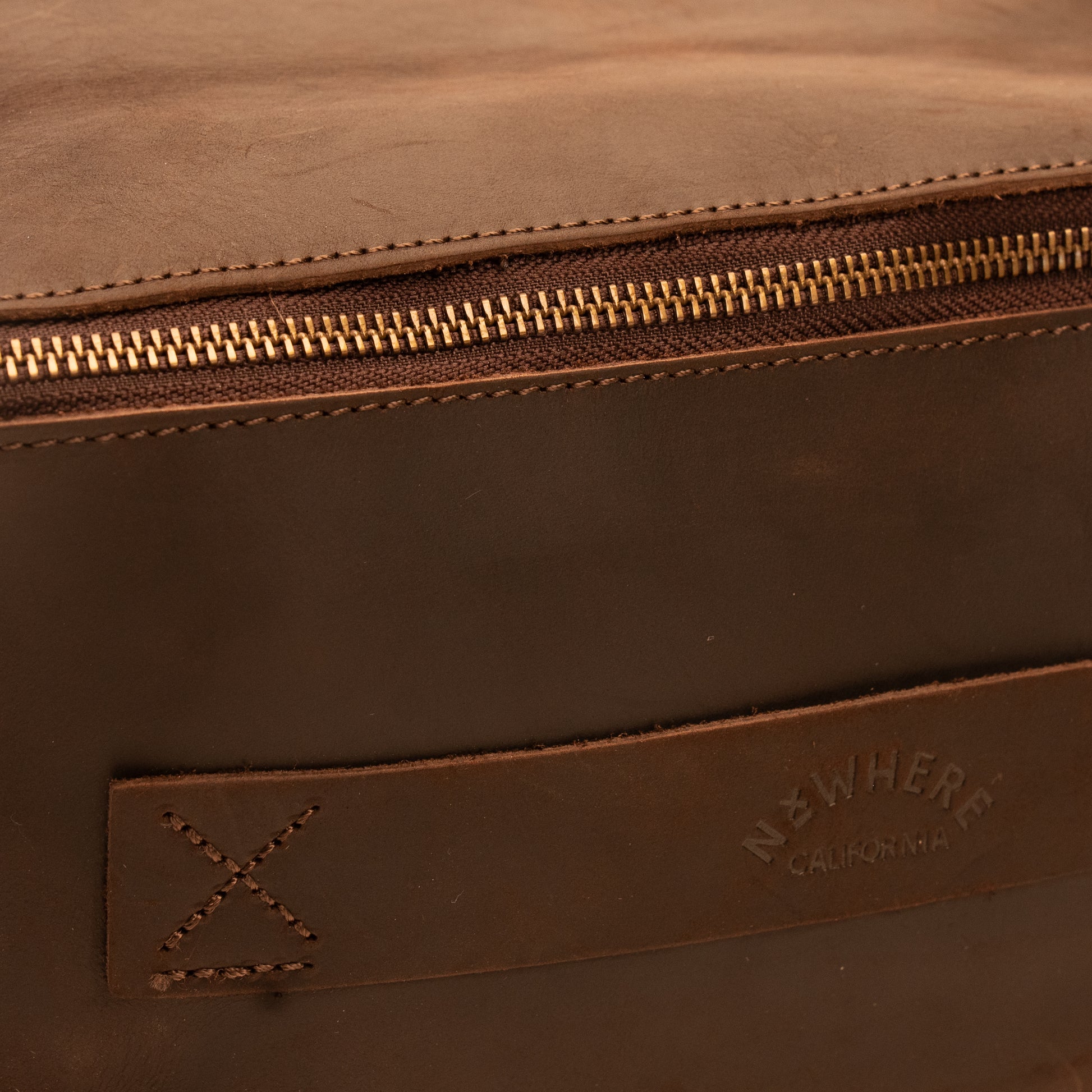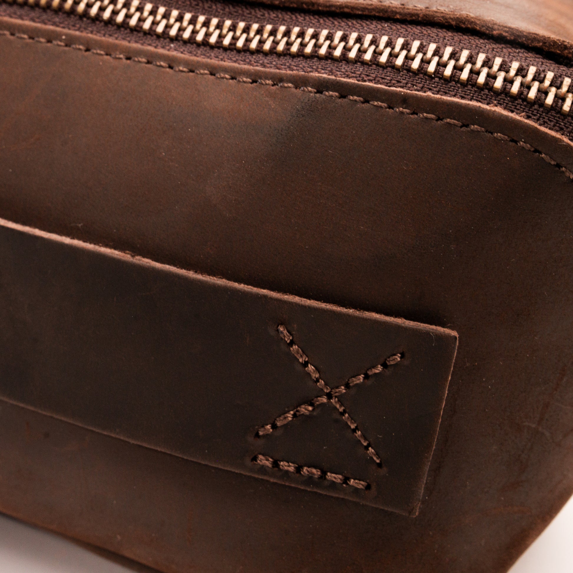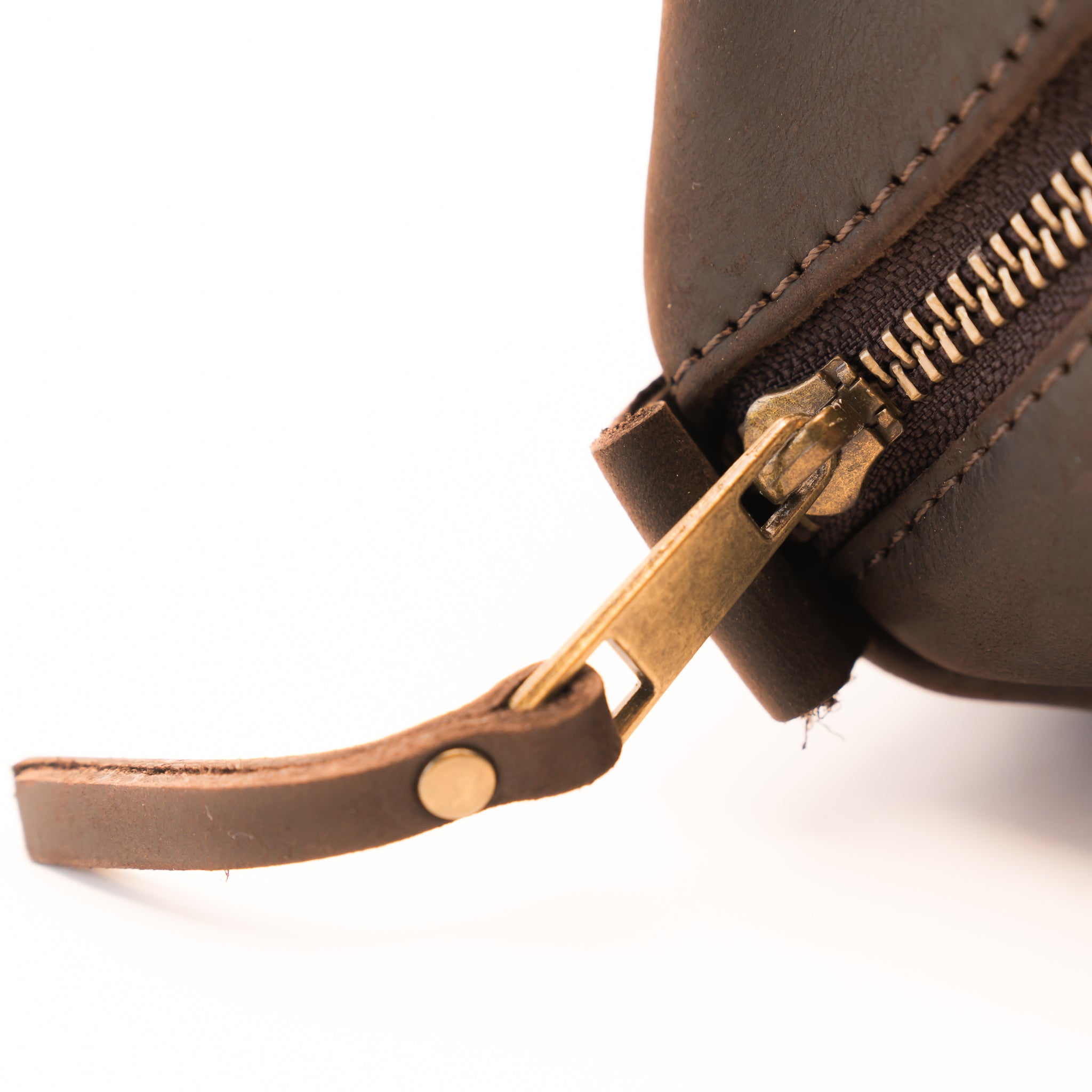 - Heavy duty brass zipper closure and zipper pull