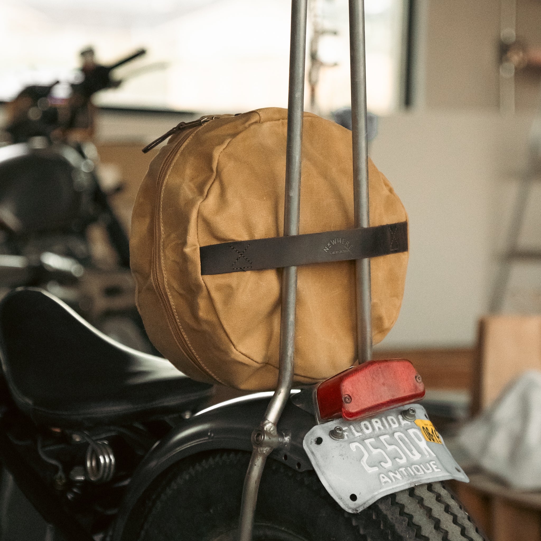 This packing round straps easily onto your sissy bar. It also fits perfectly into the Nxwhere Duffle. You could strap the whole system to a motorcycle and have an epic adventure. But you shouldn’t do that. You should spend more time at the office. Why on earth would you go on a trip? That’s time you could be spending in meetings, being productive, increasing the GDP, and maybe even impressing your manager before those quarterly reviews.