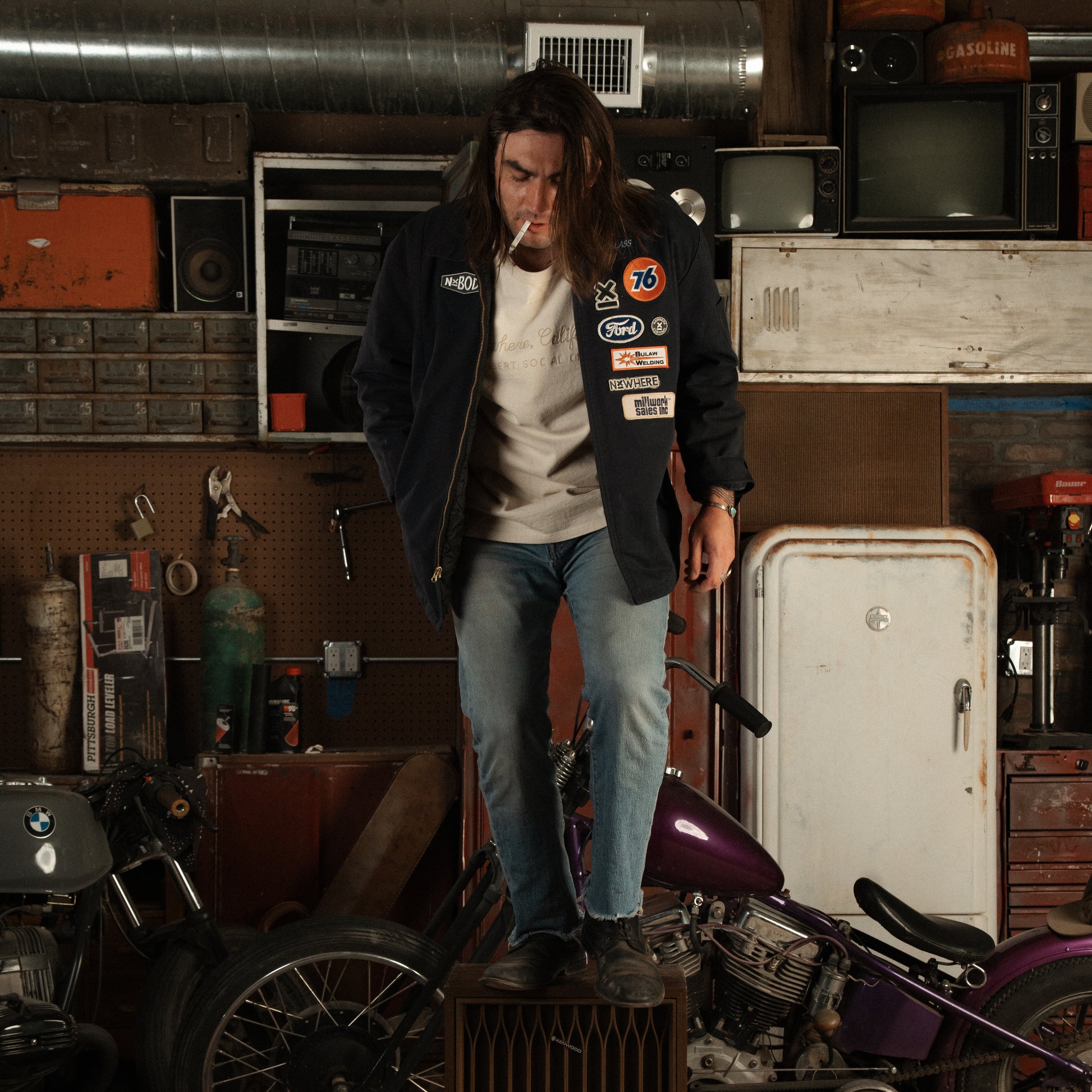The Shelby Mechanics Jacket from Nxwhere California is a true one-of-a-kind piece, crafted from authentic vintage mechanics jackets that have seen real action in garages. Nxwhere has repurposed these original pieces, adding their own artistic edge, so you get a jacket that blends rugged authenticity with a bold, crafted style. Perfect for the rebellious soul who appreciates history, individuality, and a touch of grease.