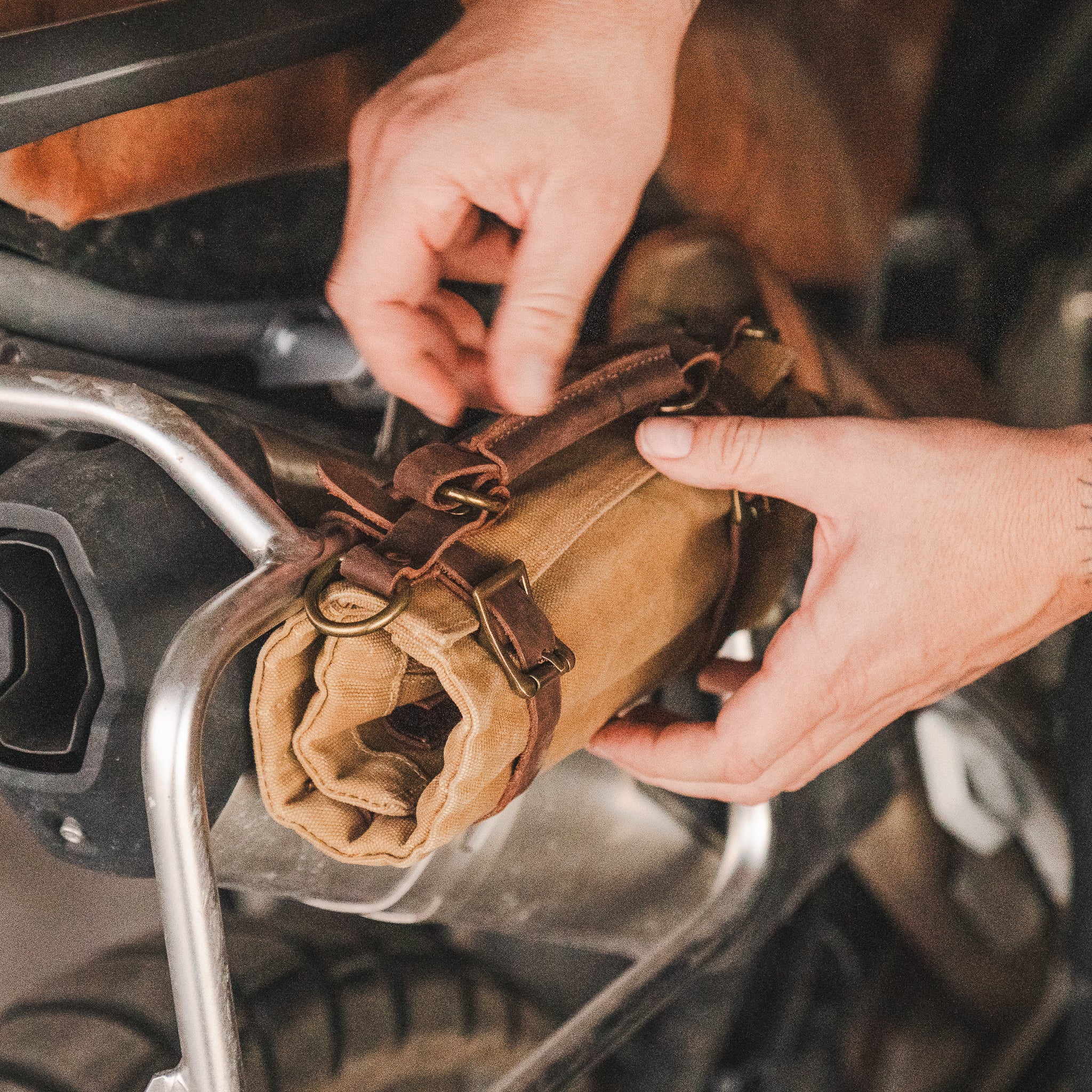 - Attaches to motorcycle sidebar